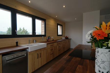 • Efficacité énergétique : en combinant une conception bioclimatique, une isolation performante et un poêle à bois à haut rendement, la maison garantit une faible consommation énergétique.